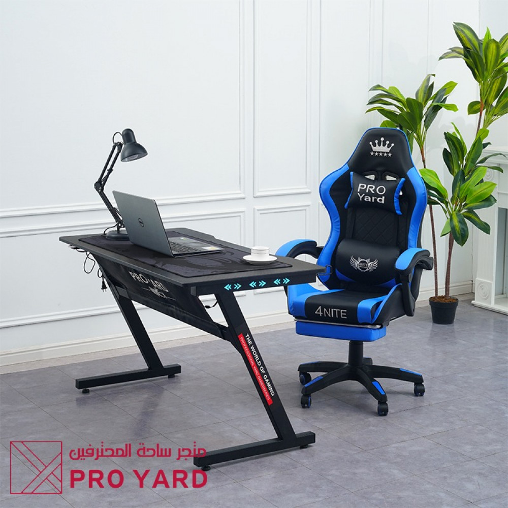 كرسي العاب قيمنق أزرق مع طاولة قيم أسود